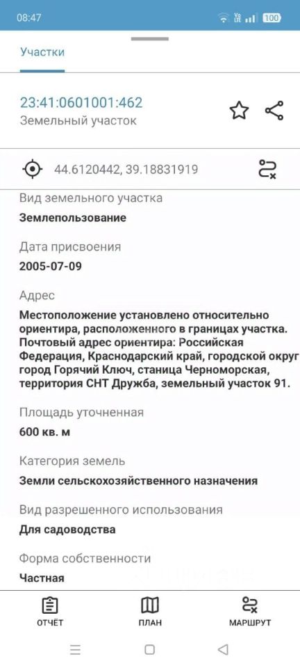 Продам земельный участок площадью 6 соток, расположенного в границах Горячеключевского района СНТ ''Дружба''. Участок правильной конфигурации. Кадастровый номер участка 23:41:0601001:462. Категория земель- земли сельскохозяйственного назначения. Разрешенное использование -для садоводства. Документы готовы к сделке