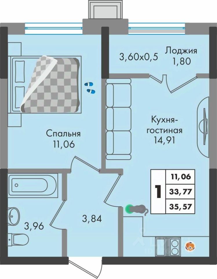 Общая площадь35,57 м2