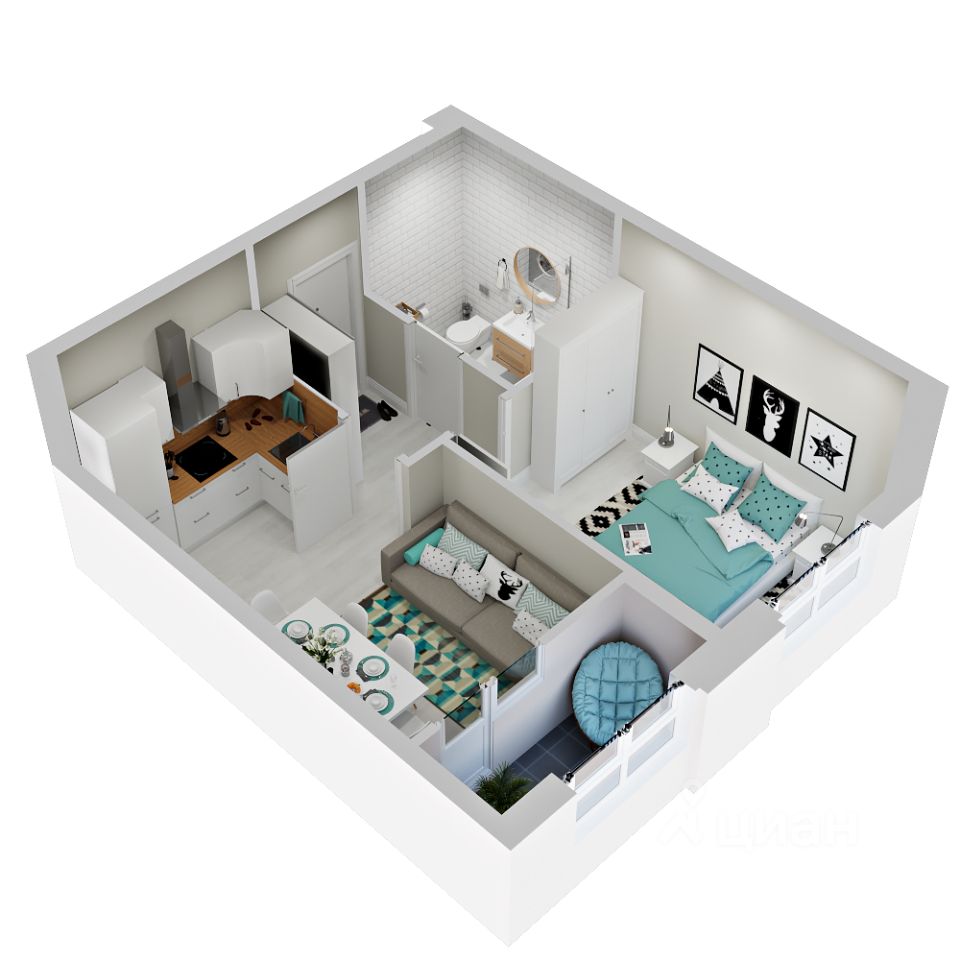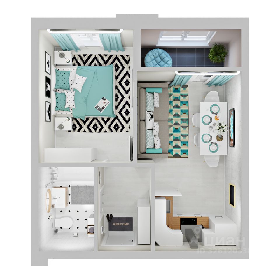 1-комнатная квартира, как 2-комнатная в жилом комплексе Зеленая территория от надежного застройщика СЗ Флагман в Краснодаре.