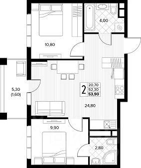 Продаётся 2-комнатная квартира в строящемся доме (поз.8), срок сдачи: II-кв. 2026, общей площадью 53.9 кв.м., на 5 этаже. Новый жилой комплекс ''Кипарис'' от застройщика ''AVA'' расположен по адресу: Россия, Краснодарский край, муниципальный округ Анапа, село Сукко, Мирная улица