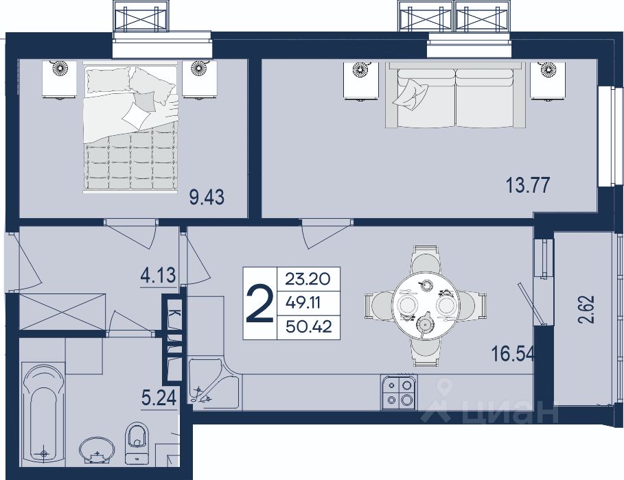 2 комнатная квартира с ремонтом 50.42 м², на 8 этаже в жилом комплексе ''Дом 101''.