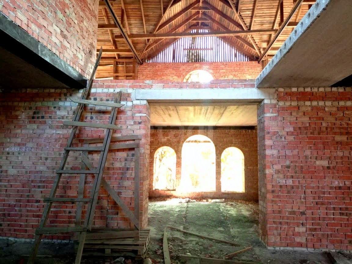 Недострой из кирпича в 2 этажа. Есть крыша. А также подвальное помещение под всей площадью дома. Площадь дома около 150 кв.м.