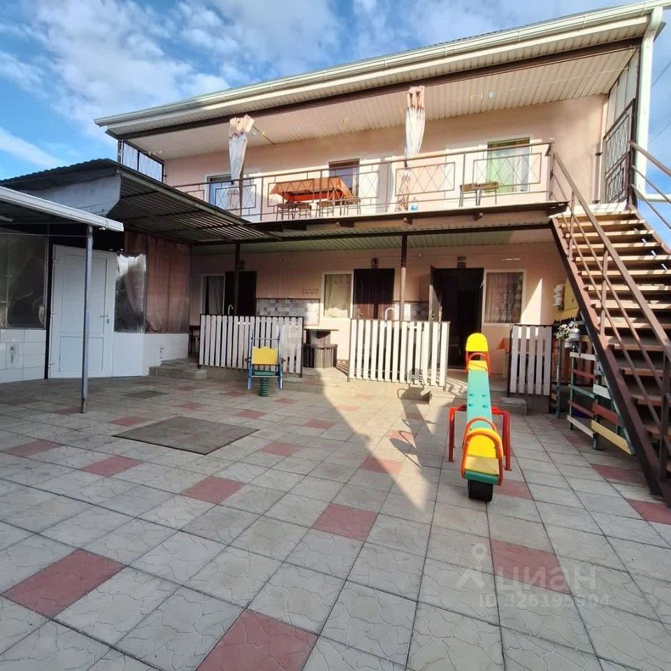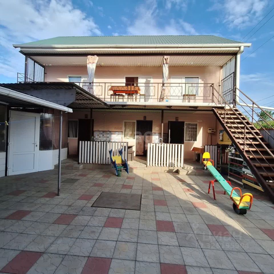 На участке расположен гостевой двухэтажный дом, 2019 года постройки. На первом этаже - три номера, в каждом санузел с душем. На втором этаже - три номера с санузлом и личной кухней. Также на участке расположена большая летняя кухня, летний душ, зона отдыха. Двор выложен плиткой.