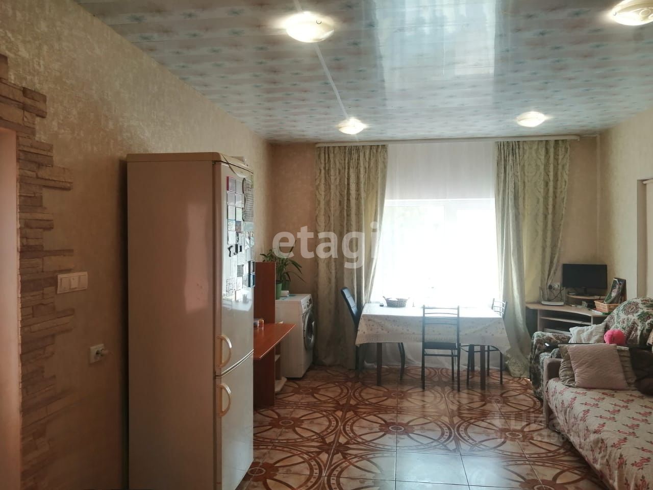 В доме косметический ремонт: в комнатах натяжной потолок, на полу в ванной, кухне и одной комнате теплый пол, кафель, в двух комнатах на полу линолеум.
