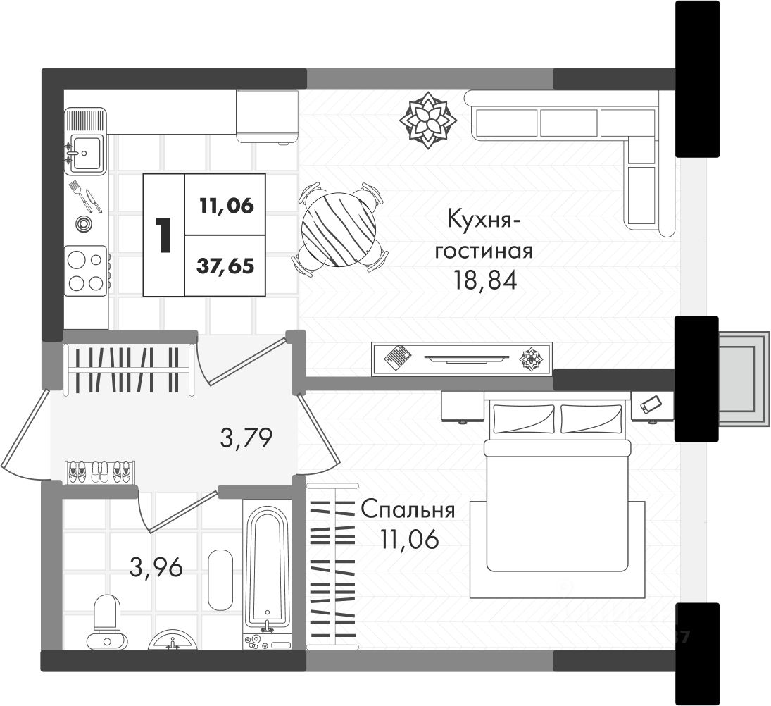 Общая площадь37,65 м2