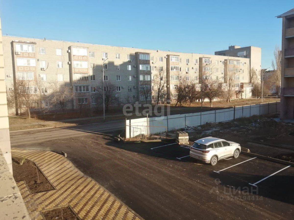 Во дворе большая стоянка для машин и детская площадка.
