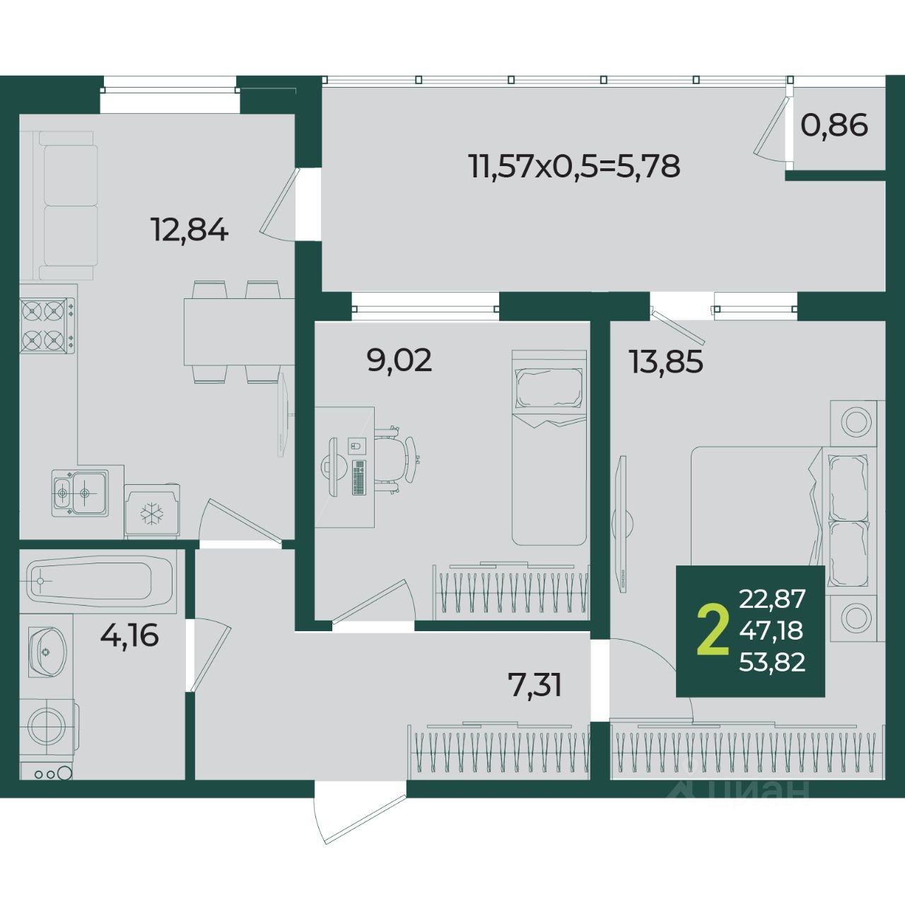 Общая площадь53,82 м2