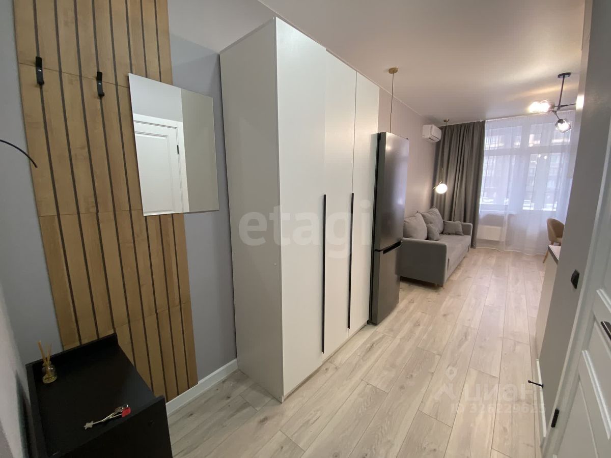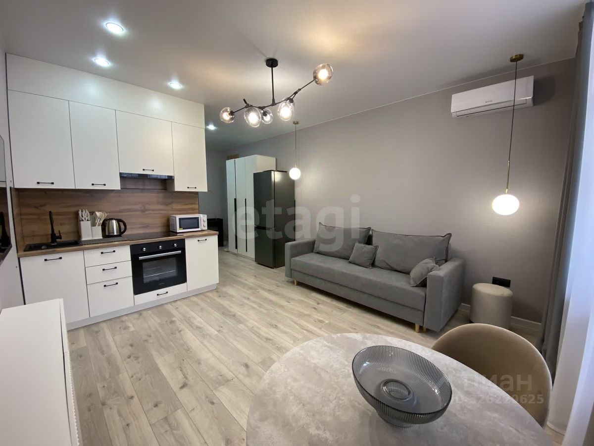 Студия площадью 27 кв. м в ЖК ''Достояние'' с качественным дизайнерским ремонтом и панорамным остеклением. Планировка продумана для комфортного проживания: современная кухня оснащена всей необходимой техникой, а гостиная зона оборудована раскладным диваном и телевизором. Для хранения вещей предусмотрены встроенные шкафы. Объект подходит для проживания одного-двух человек или пары с ребенком. Жилой комплекс обладает развитой собственной инфраструктурой: на территории расположены круглосуточные аптека и магазин ''7 дней'', в шаговой доступности — супермаркеты ''Магнит'' и ''Пятерочка'', торговые центры, кафе и сервисы доставки Ozon и Wildberries. Во дворе обустроены детские площадки и зоны для барбекю, а также имеется достаточное количество парковочных мест. В пешей доступности находятся два детских сада и школа. Транспортная доступность обеспечивает быстрый выезд на основные магистрали. Арендная ставка составляет 25 000 рублей в месяц плюс коммунальные платежи, требуется залог в размере одной месячной платы. Код пользователя: 161502 Номер в базе: 10874390