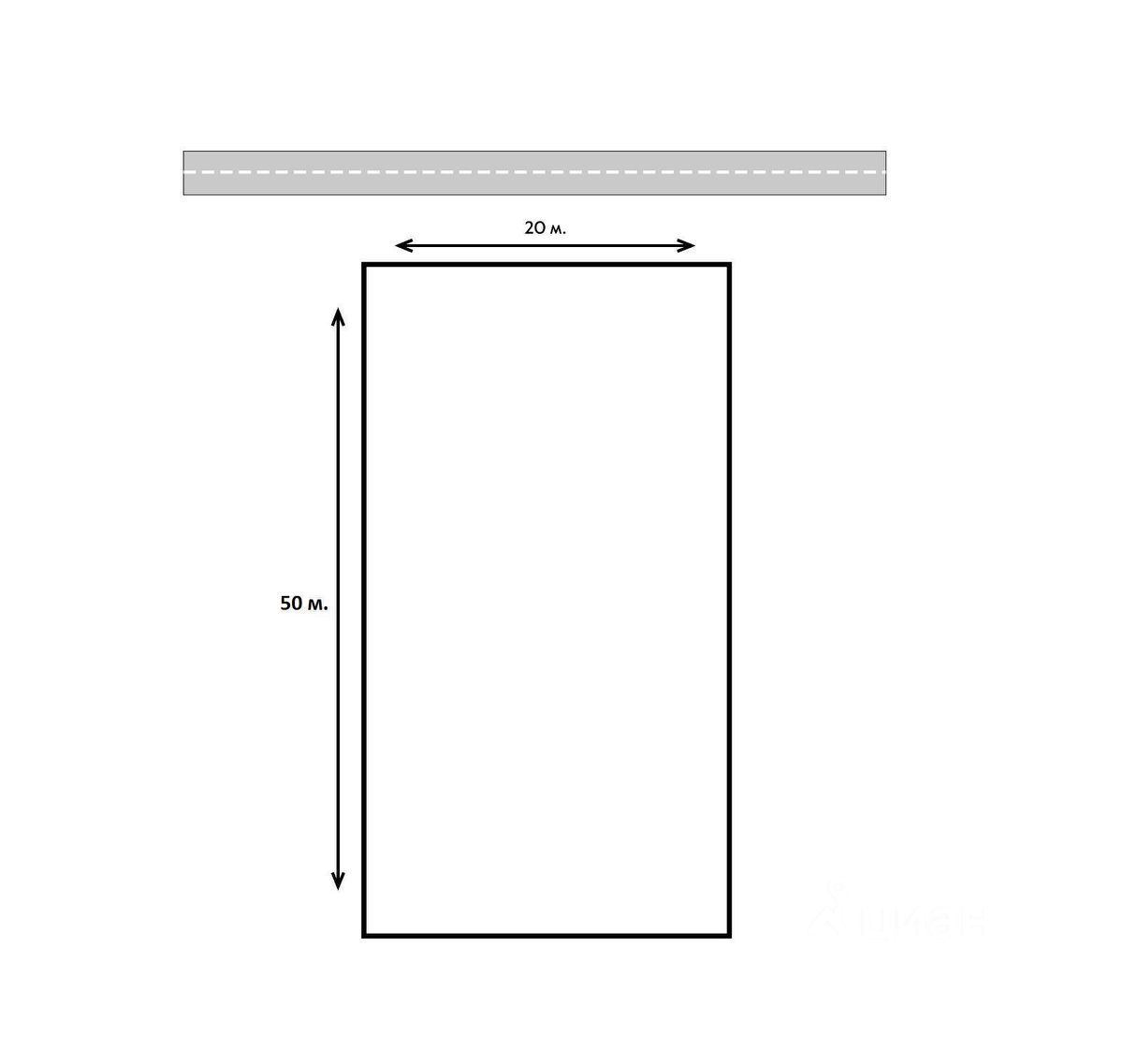 Участок правильной формы 20 метров на 50 метров.