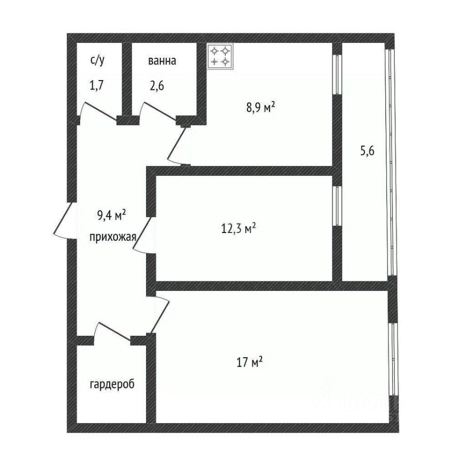 В продаже двухкомнатная квартира в ЖК Зеленодар. Дом монолит-кирпич. Квартира в предчистовой отделке на 9 этаже, площадью 54,4 м2. Высота потолков 3 метра, санузел совмещенный. Планировка на две стороны. Квартира с 2-мя балконами. В подъезде два лифта: грузовой и пассажирский. Дом был сдан в 2022г. Во дворе детская и спортивные площадки. Школа в шаговой доступности. Магазин Магнит находится на первом этаже.