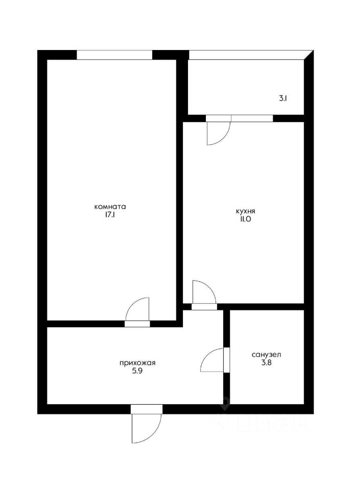 Просторная и светлая квартира: комната 17 м², кухня 11 м²! Удобная планировка, современная отделка.