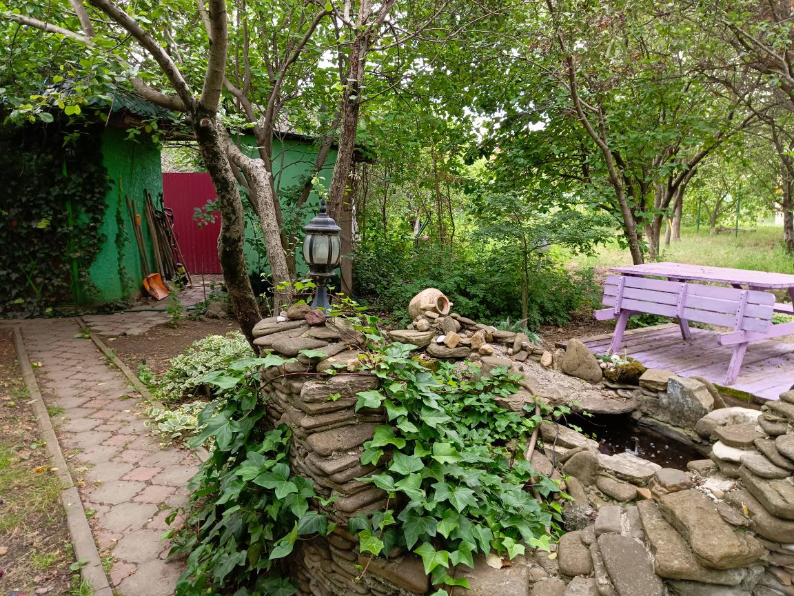 участок 5.6 соток , уличная плитка, декоративный мини-пруд , качеля , стол , дополнительное отдельное помещение ( водоснабжение ) и второй сан узел на улице ( плитка , раковина , унитаз )