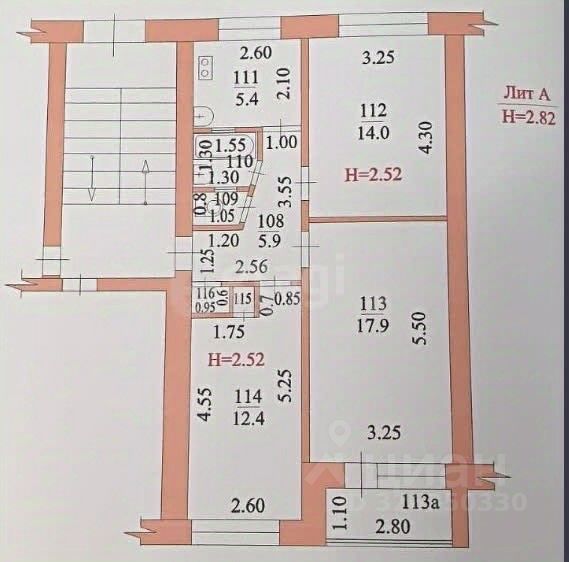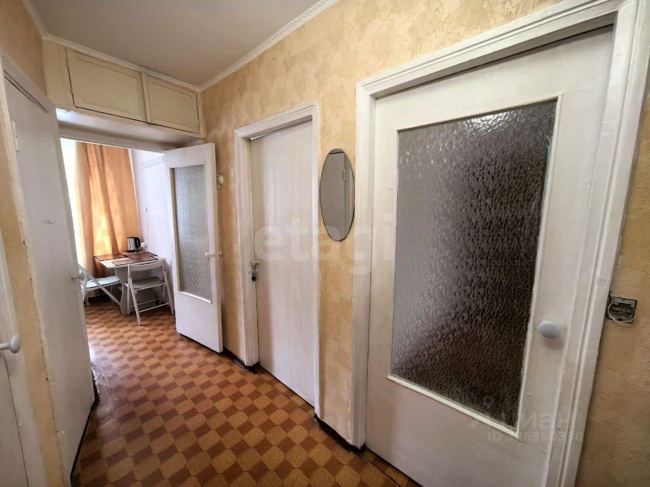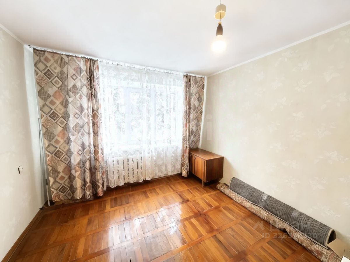 Общая площадь квартиры - 63 кв. м., жилая - 45,1 кв. м., кухня - 5,4 кв. м. Комнаты изолированные. Из одной комнаты выход на застекленную лоджию с подвалом. Санузел раздельный. Кладовка. Ремонт простой, косметический. Отопление центральное. Цоколь высокий.