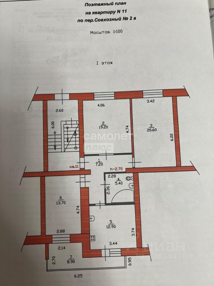 продам 3-к, Совхозный переулок, 2а7 100 000 ₽