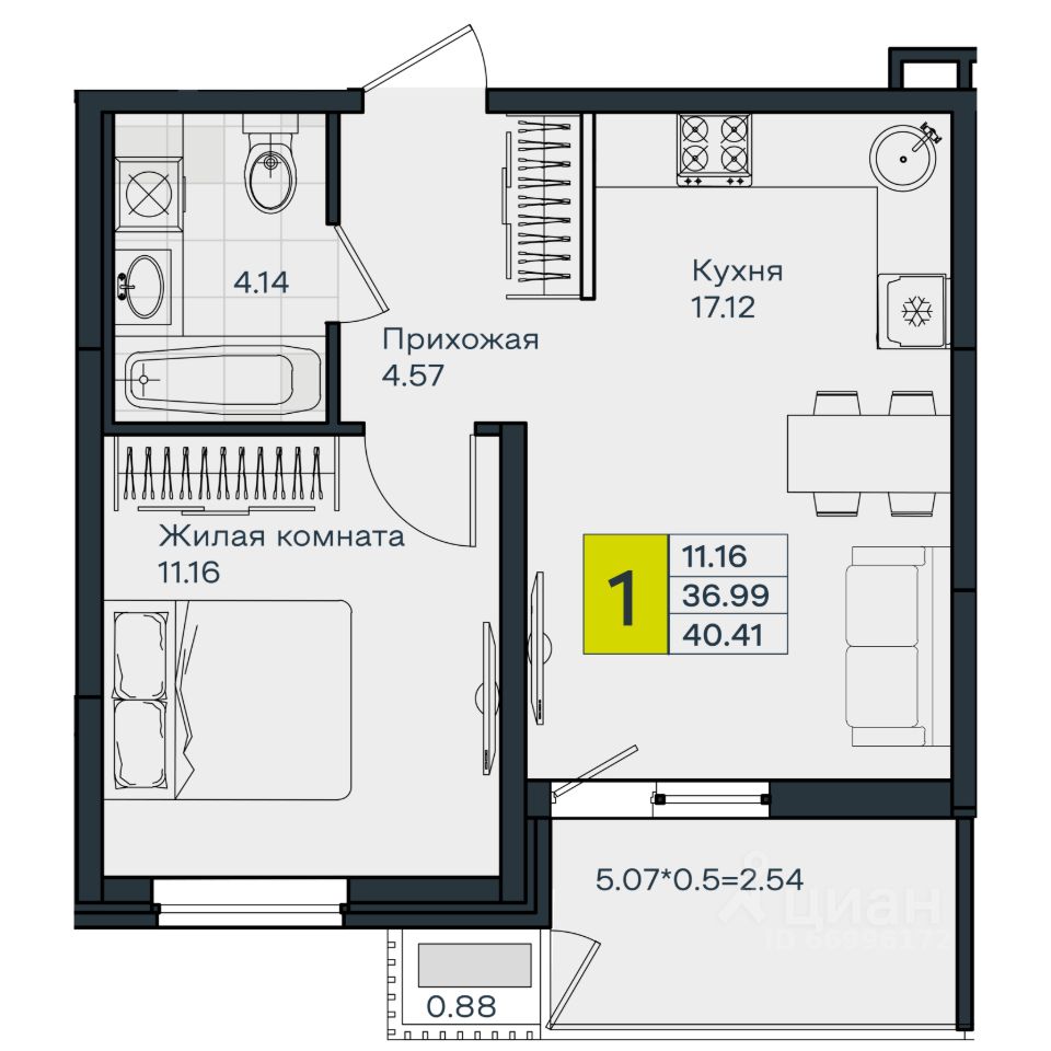 Общая площадь40,41 м2