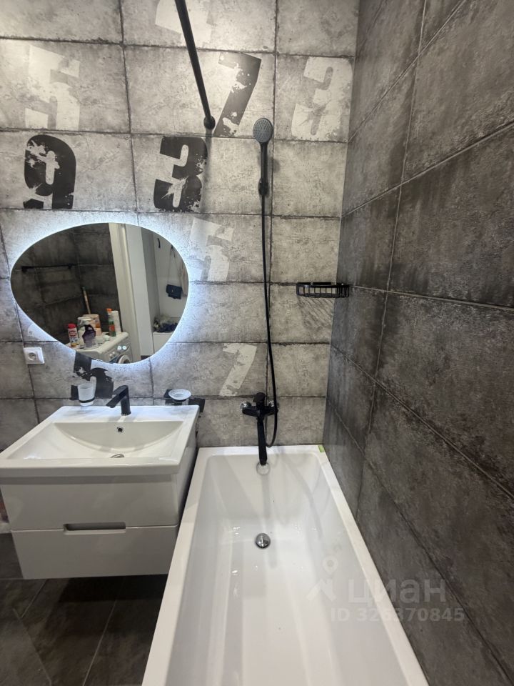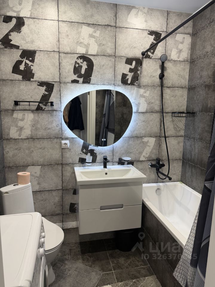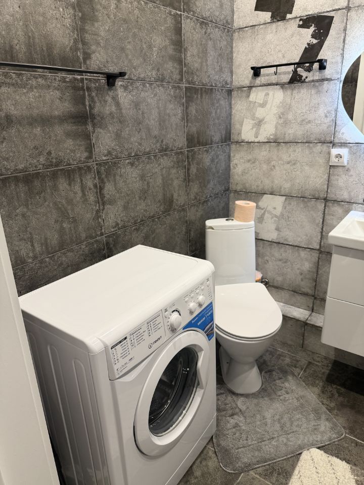В санузле установлена сантехника и стиральная машина, ванна.