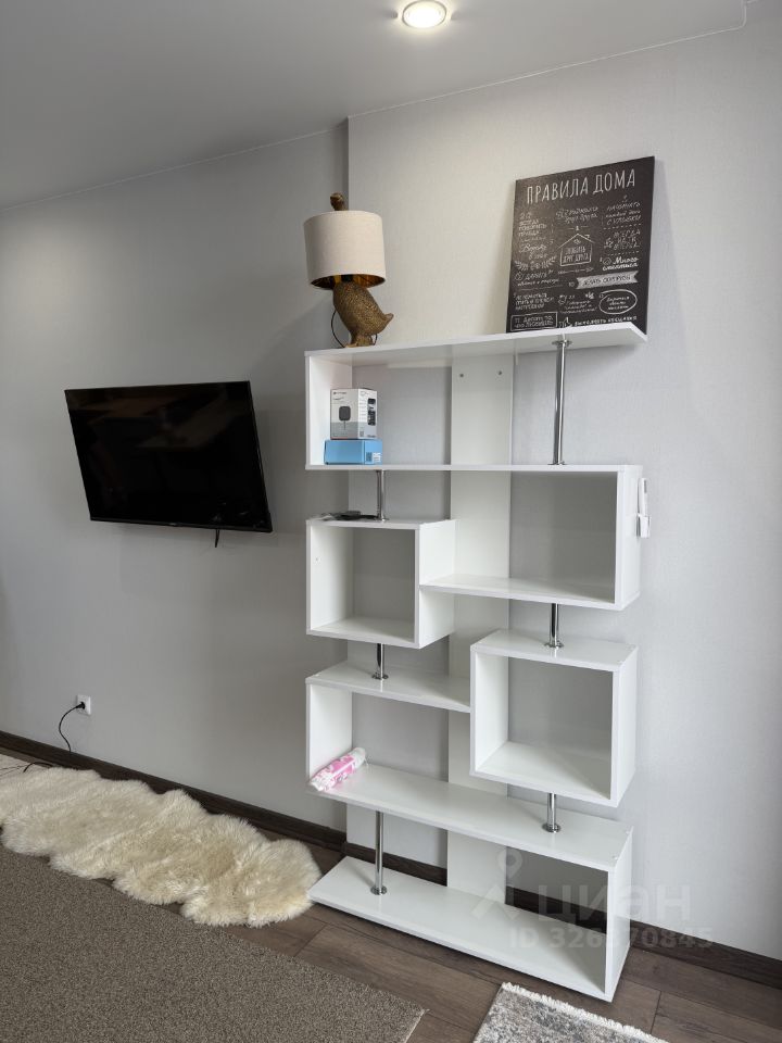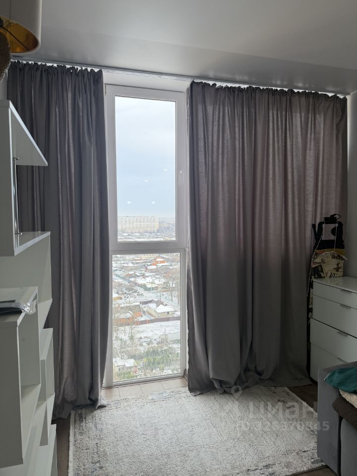 В комнате есть комод для хранения вещей, полочки. Из окон открывается приятный вид на город.