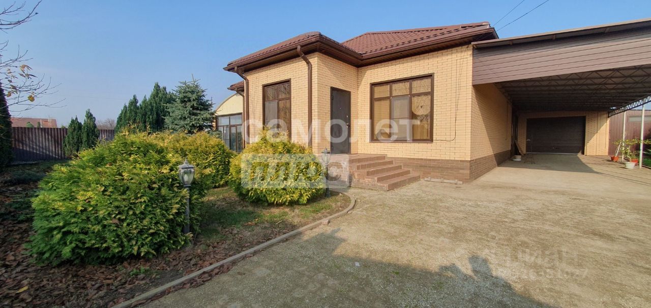 Арт. 125553223 Продаётся уютный дом -103м² с гостевым домом -60м² на земельном участке 10,5 соток. С центрального входа нас встречает прихожая с нишей под шкаф купе, далее просторный зал - гостинная, две спальные комнаты: одна большая - хозяйская и вторая поменьше - детская, котельная-кладовая, совмещённый санузел с выделенными зонами под ванную, унитаз, душевую, стиральную машинку и большая зона под два умывальника и большая кухня-столовая с выходом на крытую террасу между основным домом и гостевым домиком, в котором есть одна спальня, гостинная, кухня и совмещённый санузел. Терраса закрыта со всех сторон, с витражным остеклением, с выходами в сад с плодовыми деревьями и в отапливаемую оранжерею с цитрусовыми плодоносящими деревьями (мандарин, лимон) и к ним проложен автоматический капельный полив. Есть просторный отапливаемый гараж с автоматическими роллетами. Вдоль всего дома к гаражу примыкает большой навес для нескольких машин. За гаражом расположен хозблок с клетками для кроликов и навес для хранения хозинвентаря. Во дворе выполнено ландшафтное озеленение с автоматическим поливом. Весь участок по периметру огорожен забором из профнастила на лицевой стороне из кирпича, профнастила и кованных изделий. Въездные ворота с автоматикой. В доме стоит охранная сигнализация с домофоном. При строительстве дома всё было продуманно до мелочей и выполнено из качественных материалов с соблюдением всех строительных норм и правил.