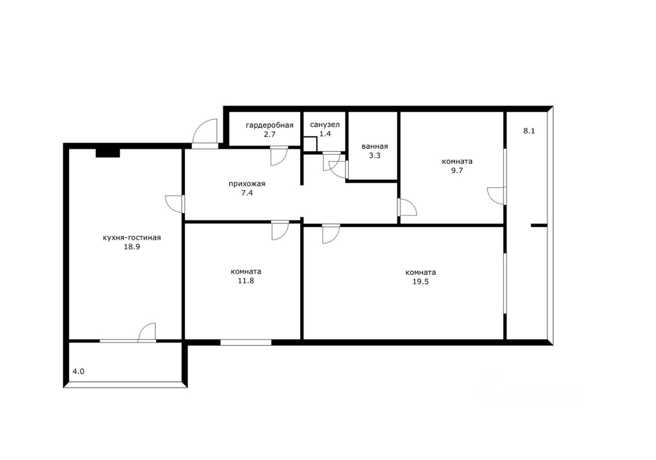 Квартира с огромной площадью, кухня-гостиная 18,9 кв. м , где поместятся не только большая семья, а и все многочисленные гости будут чувствовать себя комфортно. Три уютнейшие комнаты по 9,7 кв. м, 19.5 кв. м и 11,8 кв. м встретят вас в свои объятия после трудового дня. Большой раздельный санузел , просторный коридор, где отлично встает большой шкаф купе и дополнительно есть гардеробная. Планировка на две стороны (окна выходят во двор и на улицу). В квартире ремонт от застройщика, в дальнейшем можно сделать по своему вкусу. Комиссионное вознашраждение