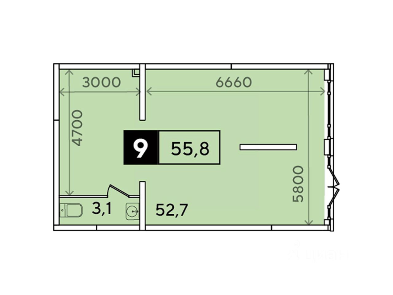 Общая площадь55,8 м2