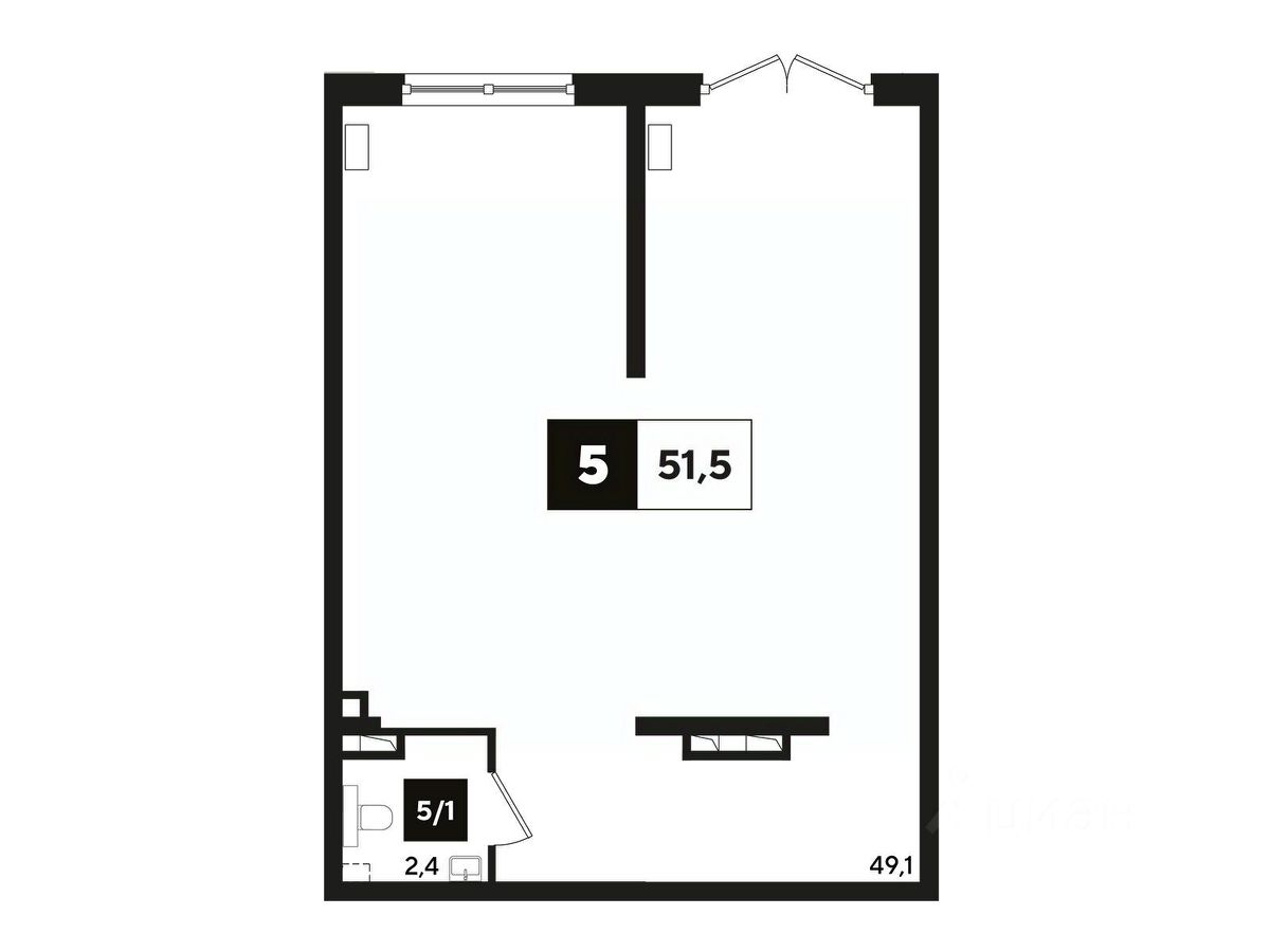 Общая площадь51,6 м2