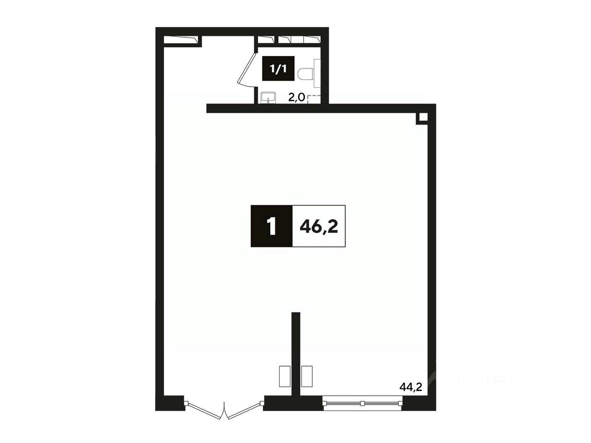 Общая площадь46,5 м2