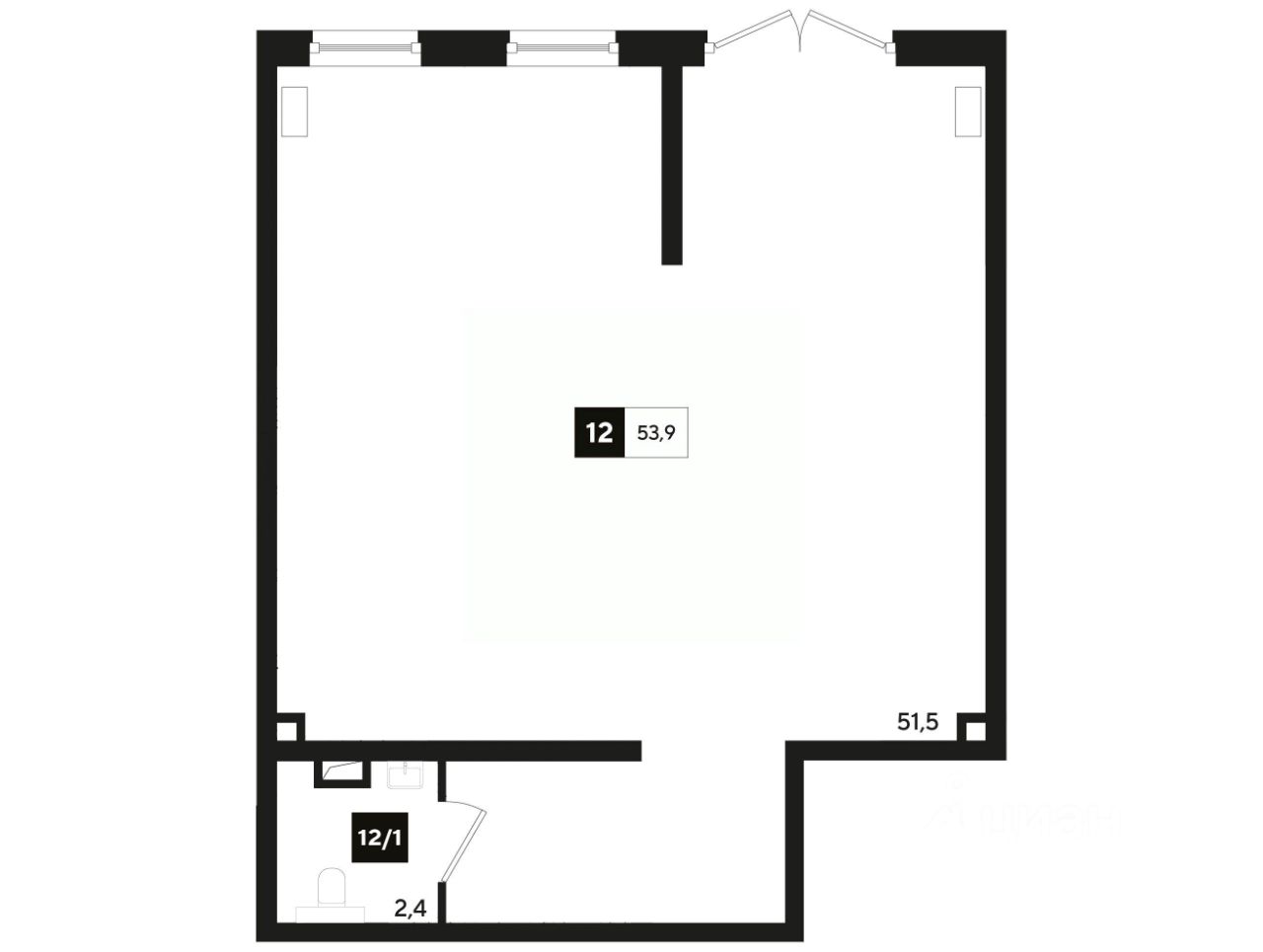 Общая площадь53,9 м2