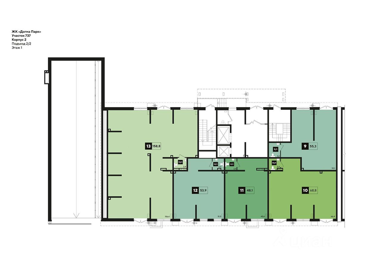 В реализации — коммерческие помещения свободного назначения в литере 2 общей площадью 159.9 кв.м. на 1 этаже от застройщика DOGMA в микрорайоне ''DOGMA PARK'' от застройщика DOGMA, одного из ведущих девелоперов Краснодарского края.