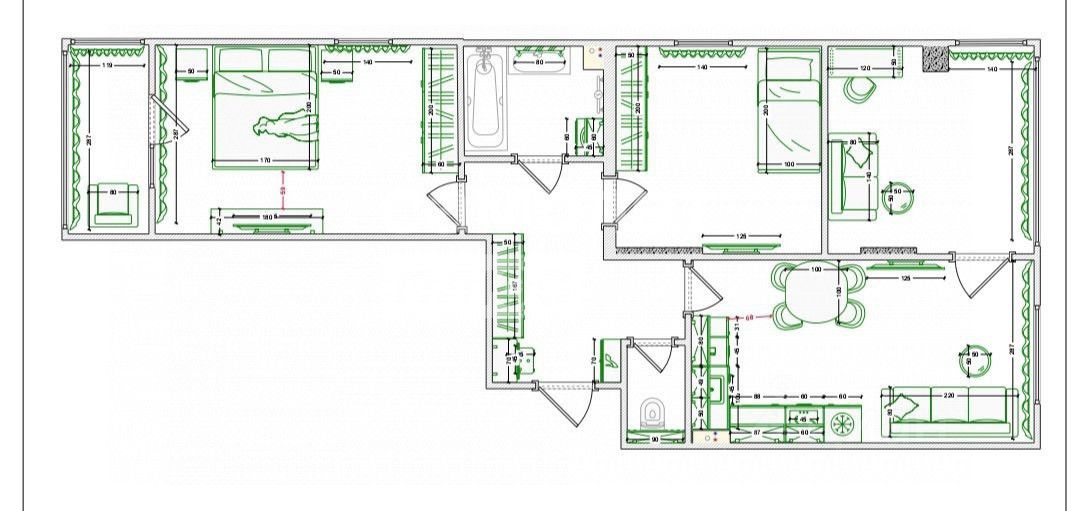 Планировка - 3 спальни, кухня- гостиная, ванна, туалет,балкон. Высокие потолки 3 м, наполняют квартиру воздухом и светом. Из окон открывается шикарный панорамный вид на водохранилище, горы и микрорайон.