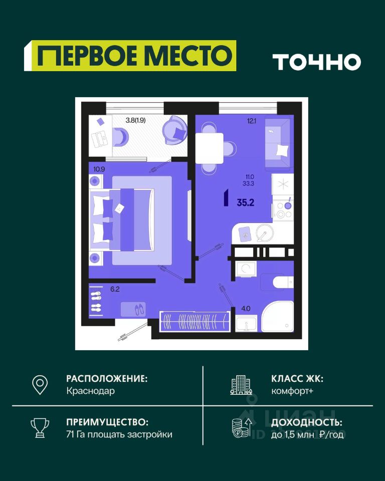 Жилой район ''Первое место''- один из самых масштабных проектов в России. На территории 71 га 18 кварталов, 31 дом переменной этажности от 8 до 18 этажей, собственный парк 9 га, храмовый комплекс, пешеходный бульвар ''Круг семьи'', детские и спортивные площадки, мангальные зоны и различные локации для отдыха. В шаговой доступности действующие муниципальные образовательные учреждения: школа на 1 100 мест и детский сад на 250 мест. Помимо этого, в жилом районе ''Первое место'' построятся школа на 1700 мест с крытым 25-метровым бассейном и 5 детских садов на 1 490 мест. На первых этажах многоуровневых парковок ''паркхабов'' разместится более 61 тыс м2 коммерческих помещений. Жителям будут доступны собственный фитнес-центр, кафе, рестораны и магазины. В каждом подъезде предусмотрены дизайнерские холлы в стиле лобби отелей, консьерж-сервис, лапомойки, отдельные колясочные и велосипедные. Также в домах будут просторные кладовые помещения и комнаты для хранения почты с почтоматами для получения посылок из маркетплейсов.