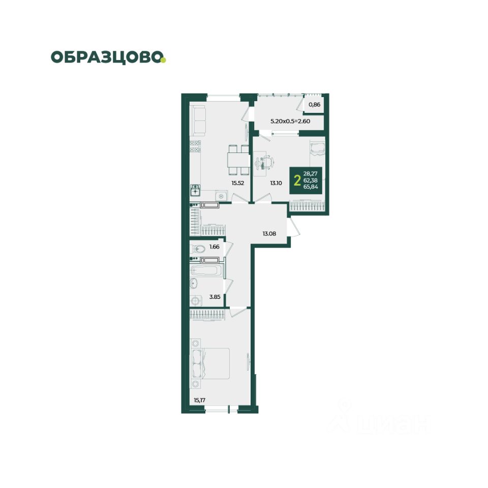 Общая площадь65,84 м2