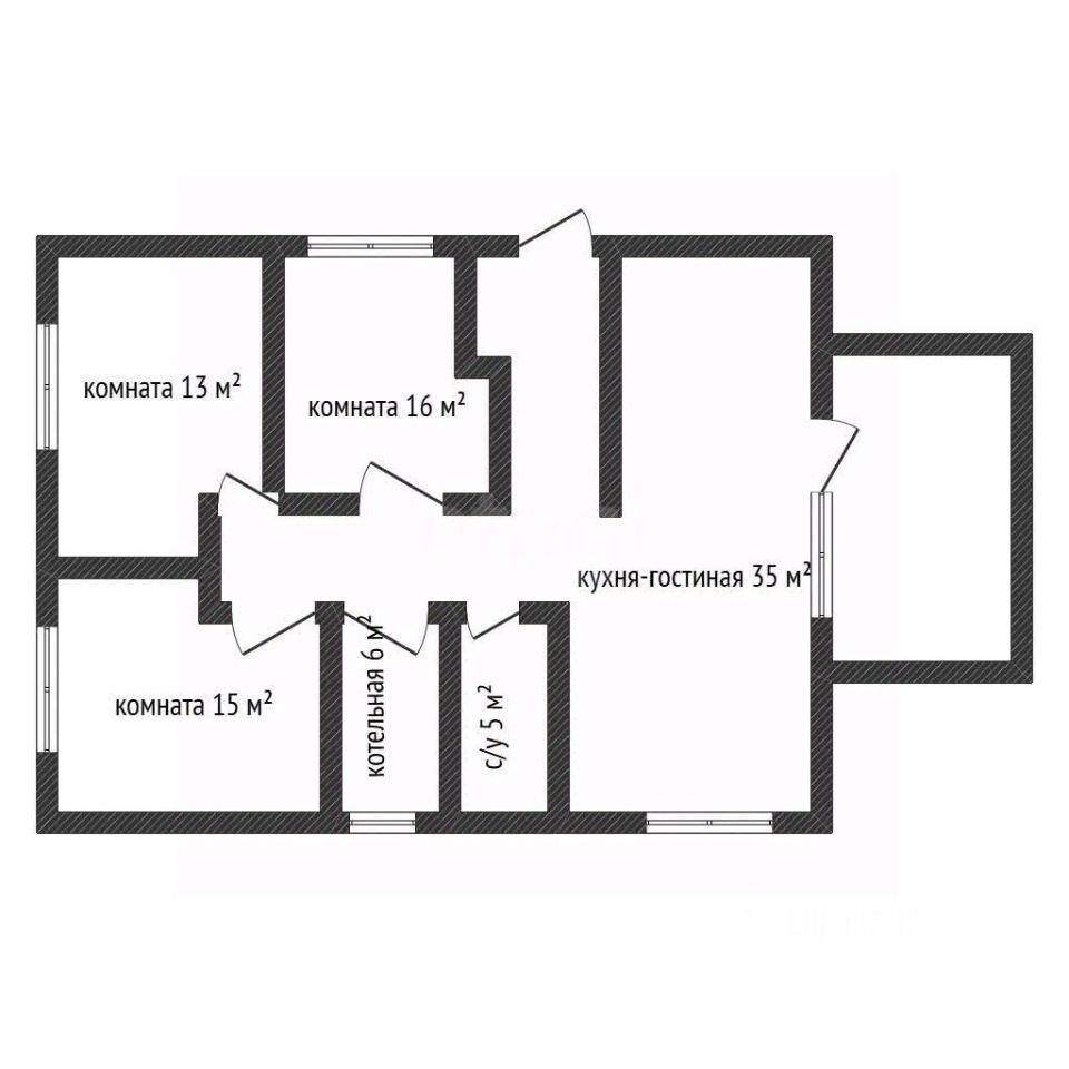 площадь дома: просторная планировка с 3 комнатами и кухнейгостиной,