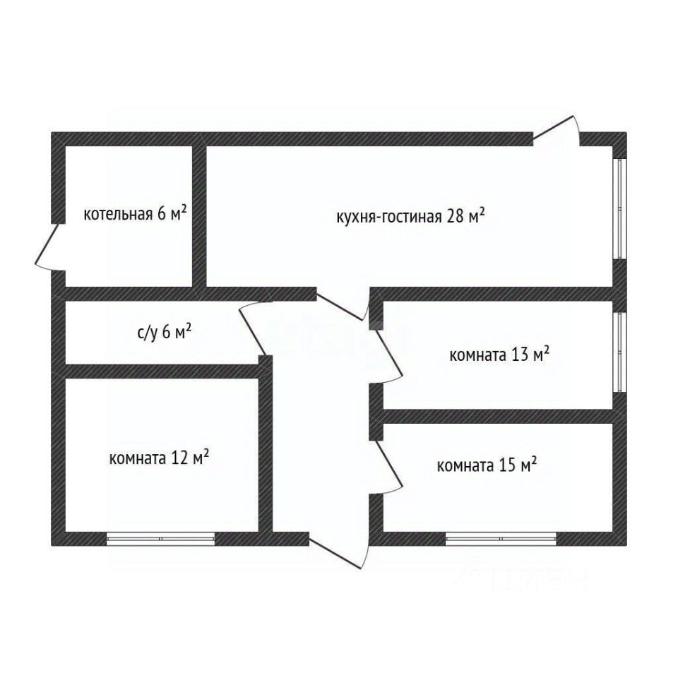 планировка: просторная кухнягостиная с выходом на террасу, три изолированные комнаты, отдельная котельная.