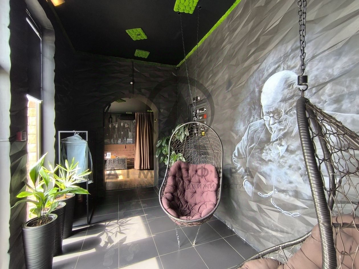 О ЗДАНИИ: Площадь: 119.3 кв.м Назначение: Нежилое Зона входа с удобными подвесными качелями, креативно расписана Зона кинотеатра с мягкими комфортными диванами и пледами Зона кальян-бара