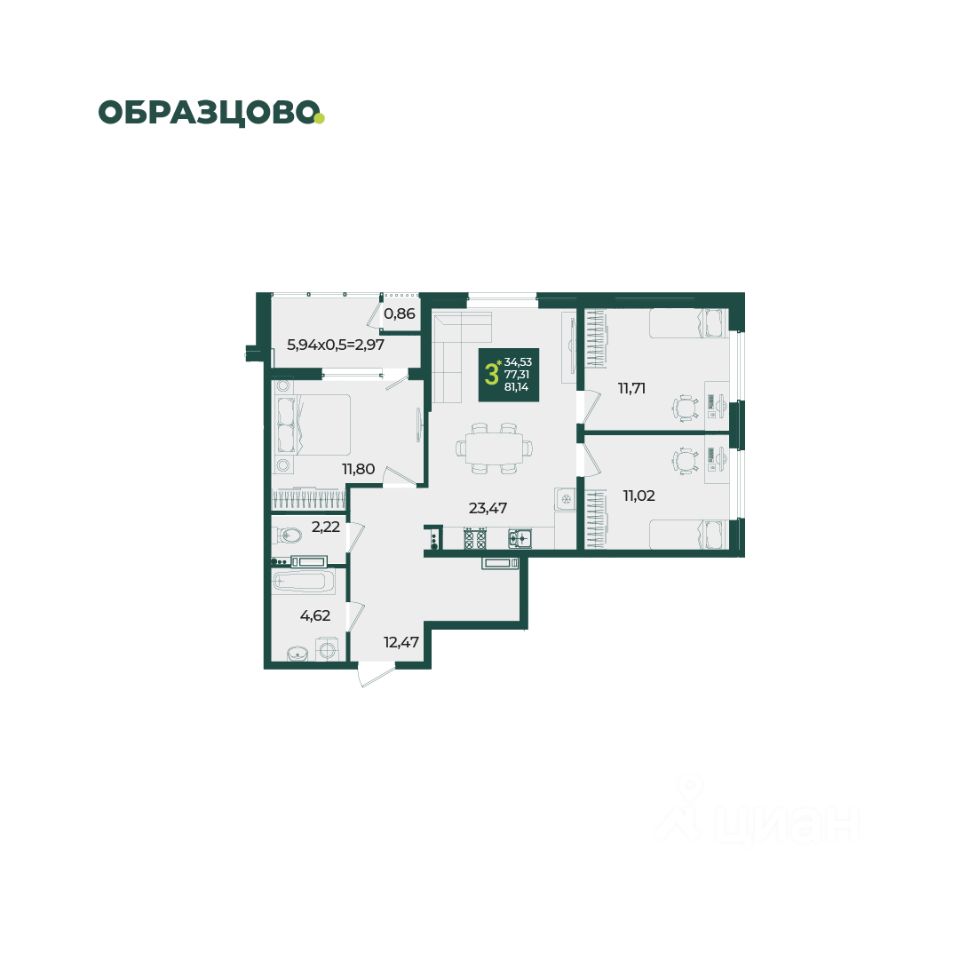 Общая площадь81,14 м2