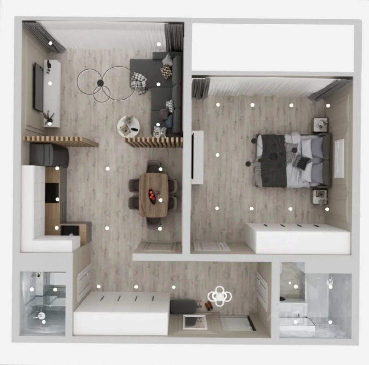 В квартире выполнен качественный ремонт по индивидуальному дизайн проекту.