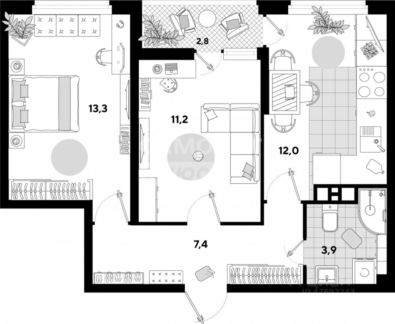 Арт. 129619671 Уютная 2-комнатная квартира в ЖК ''Самолет'' — заезжай и живи!