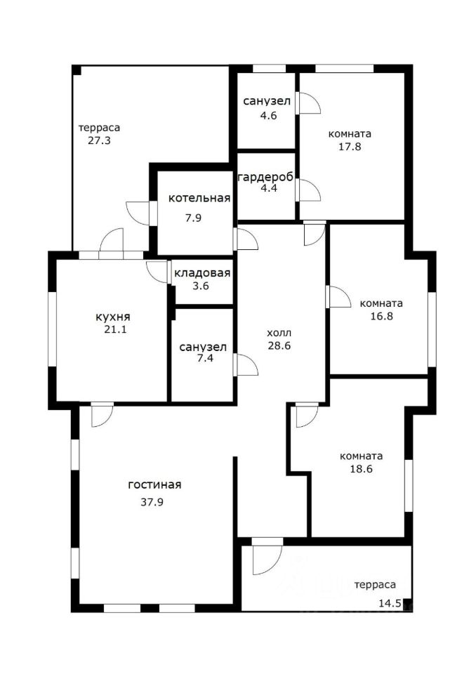 жилые комнаты, кухню с кладовкой, котельную, постирочную, два выхода на заднюю веранду, два санузла (с душем и ванной). Особые преимущества:
