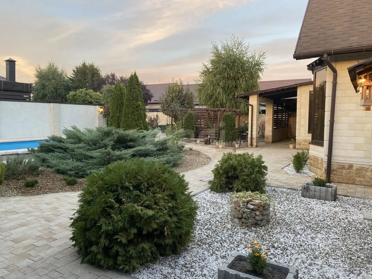 На территории: • Большой бассейн • Два декоративных пруда для рыбок • Летняя кухня • Уютная беседка и лавочки-качалки с подсветкой для создания уюта