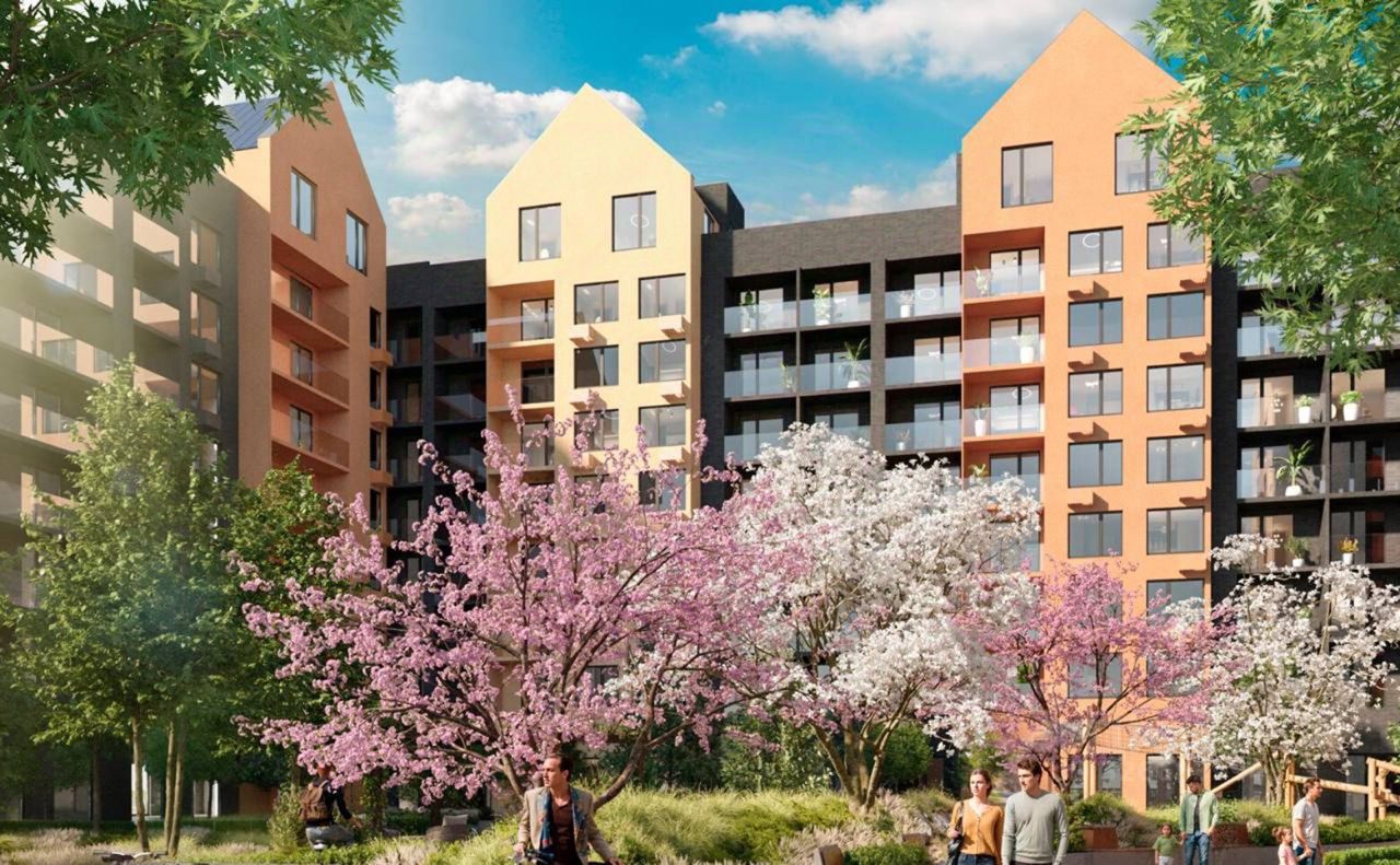 Жилой комплекс включает в себя корпуса высотой от 8 до 12 этажей. Дома возведены по качественной монолитной технологии строительства, с использованием комбинированных фасадов. В здании выполнена дизайнерская отделка входных групп и установлены современные скоростные лифты.
