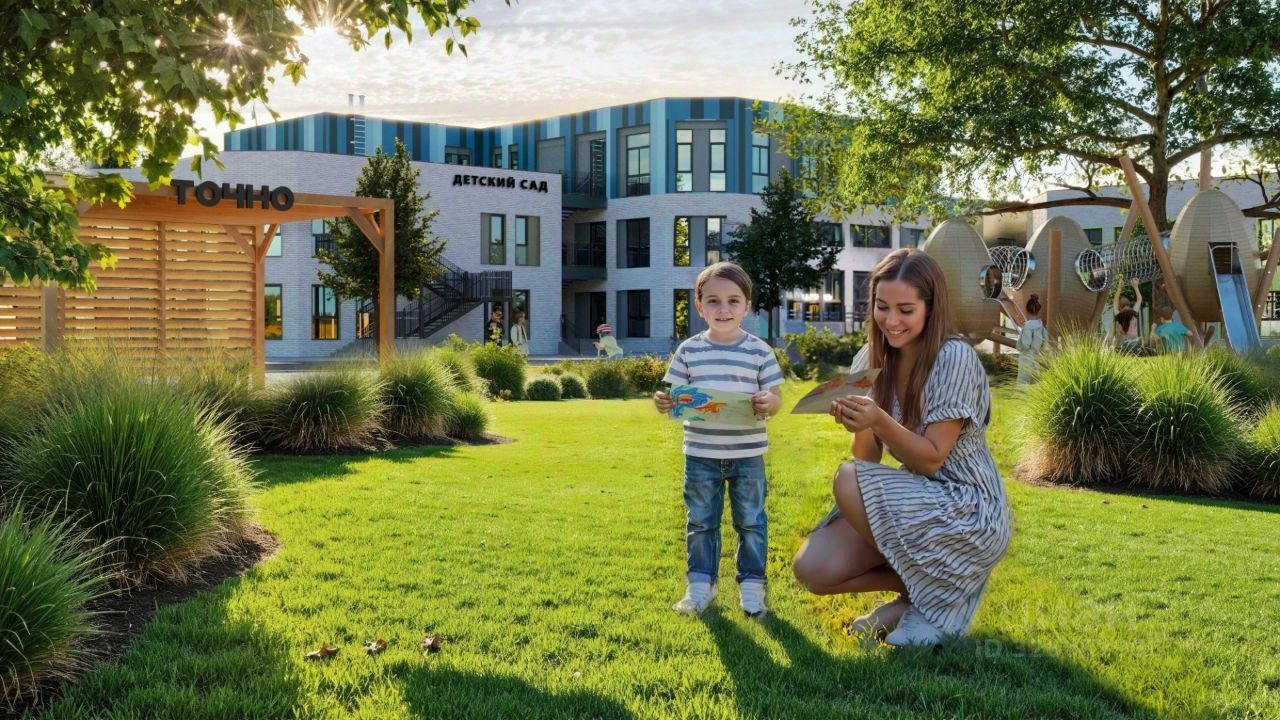 Территория комплекса благоустроена и озеленена. Во дворе спроектированы безопасные детские и спортивные площадки с тренажерами и многофункциональными воркаут-комплексами, предусмотрены зоны отдыха и барбекю, а также зона для выгула собак. На территории комплекса возведена школа и 2 детских сада. Для владельцев автомобилей предусмотрен подземный паркинг.