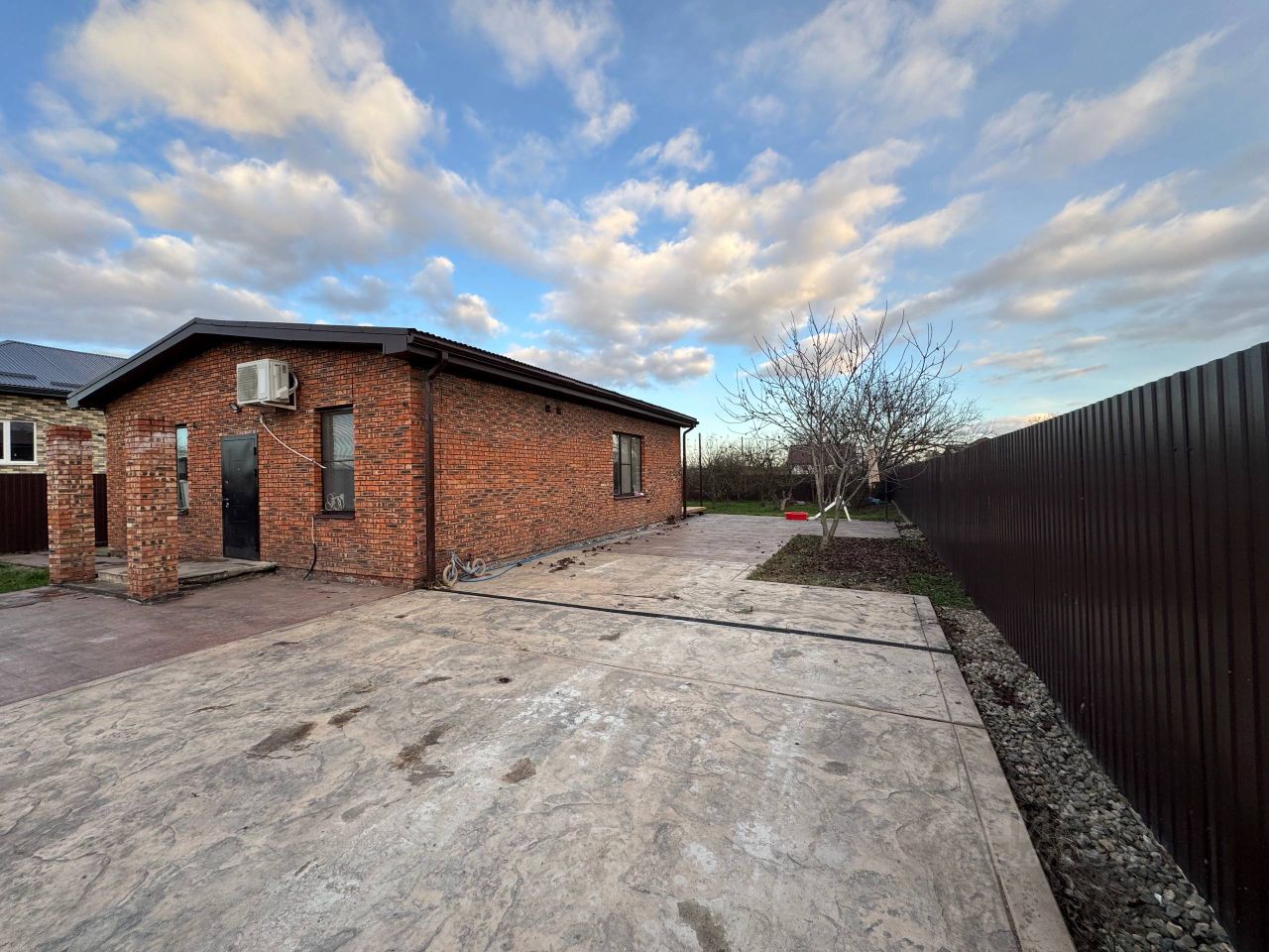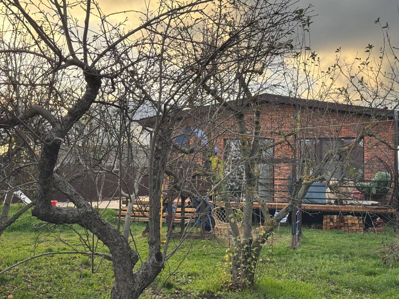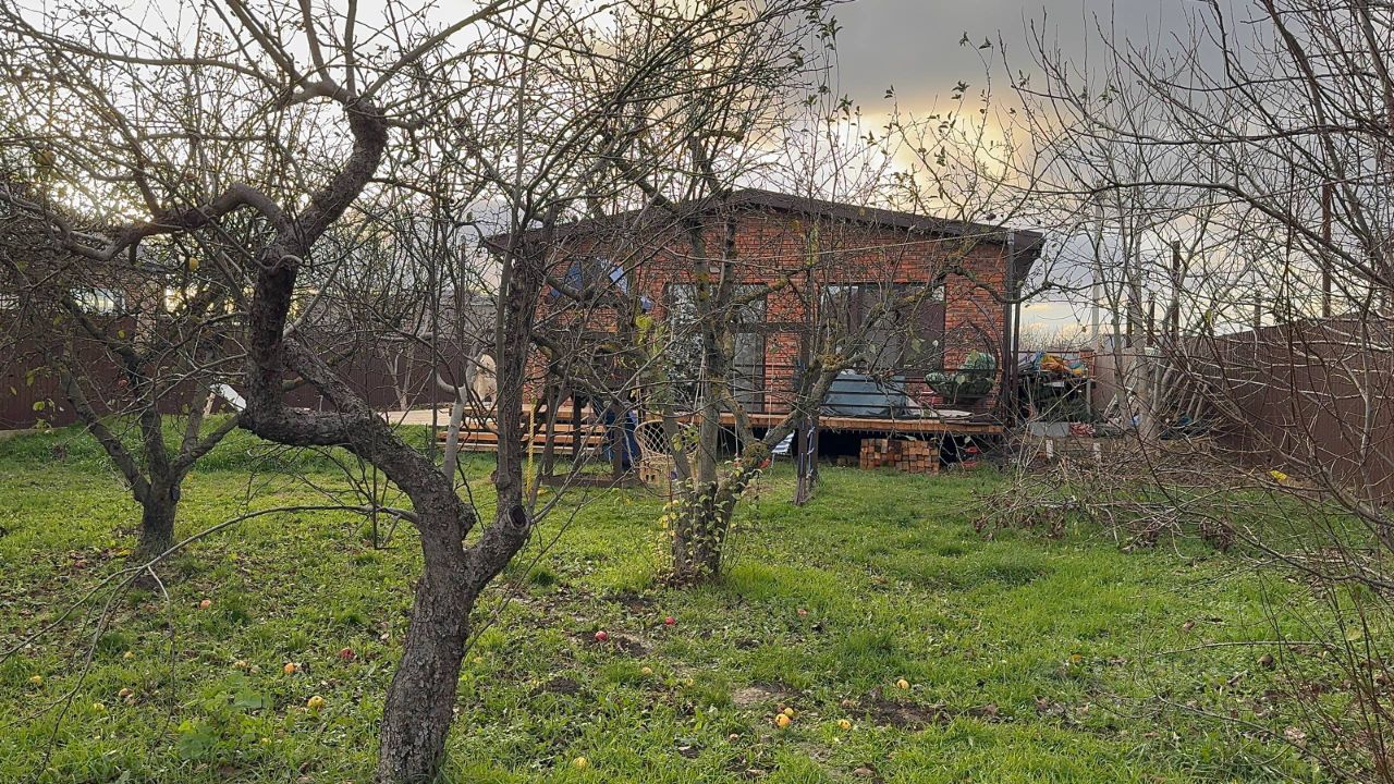 Участок 8 соток, фасад 20 метров • Кирпичные столбы + профнастил, забор по периметру • Большой ухоженный сад: 5 яблонь, слива, груша, крупный абрикос, 3 персика, фундук, калина, алыча, 7 орехов, финик • Весной — шикарный вид из панорамного окна, спальни и с террасы • Проезд отсыпан крупным щебнем и асфальтной крошкой — дорога почти как асфальт