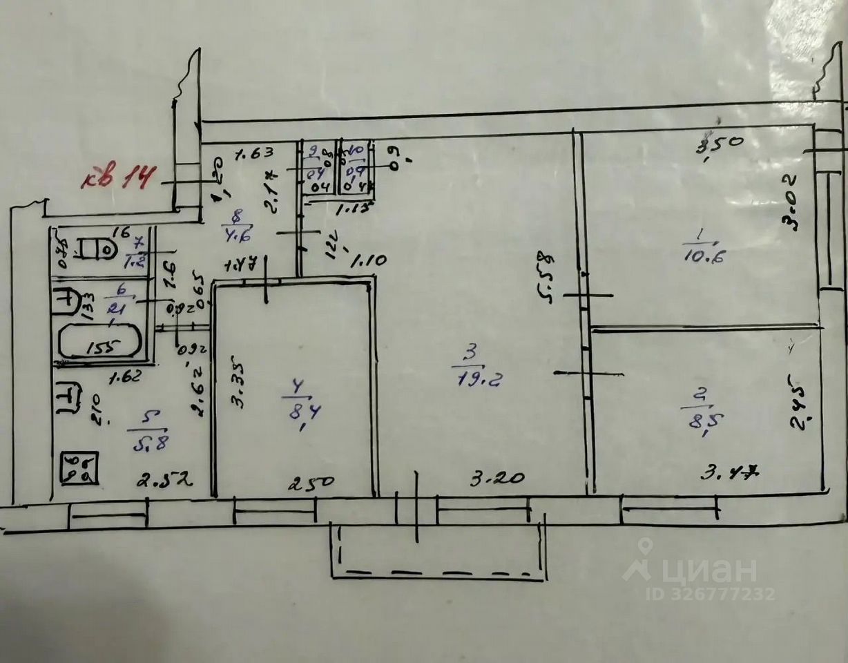 Общaя площaть 61,2 кв м