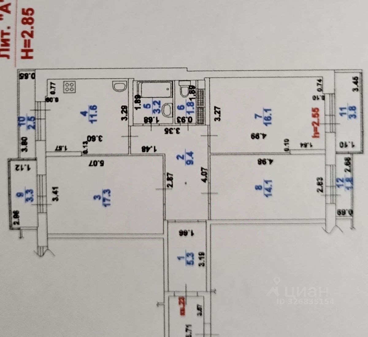 продам 3-к, им Дзержинского, 54/147 800 000 ₽