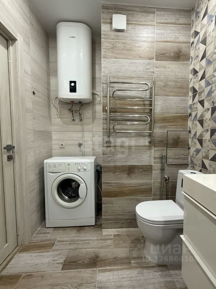 В квартире сделан современный ремонт в спокойных тонах. На полу положен ламинат, стены окрашены. В санузле стены и пол в плитке. Установлен водонагреватель.