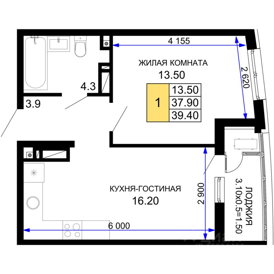 продам 1-к квартира16 567 700 ₽