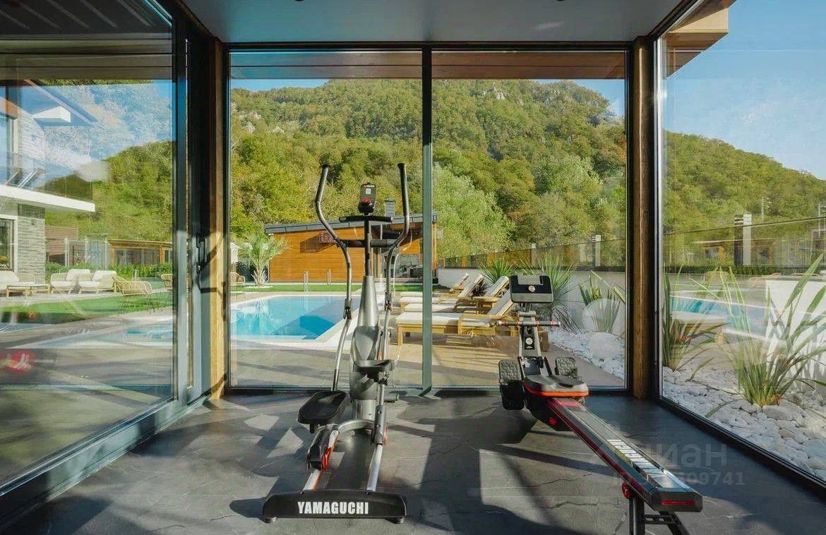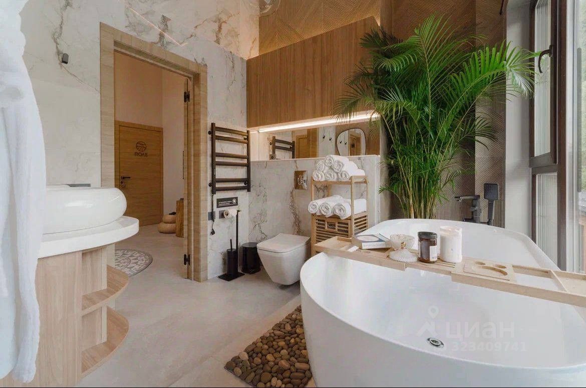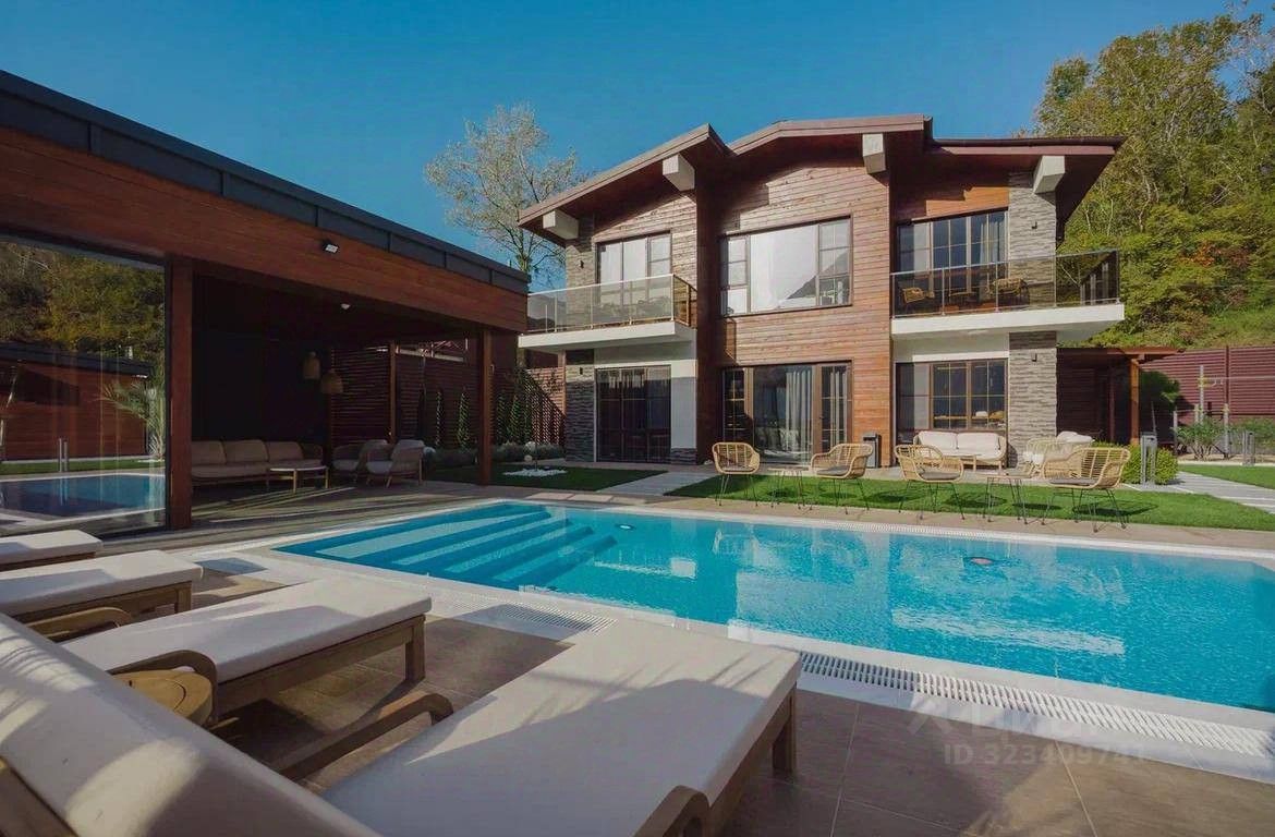 На придомовой территории расположены баня с просторной террасой, гостевой дом для персонала, бассейн, паркинг на 3 автомобиля.