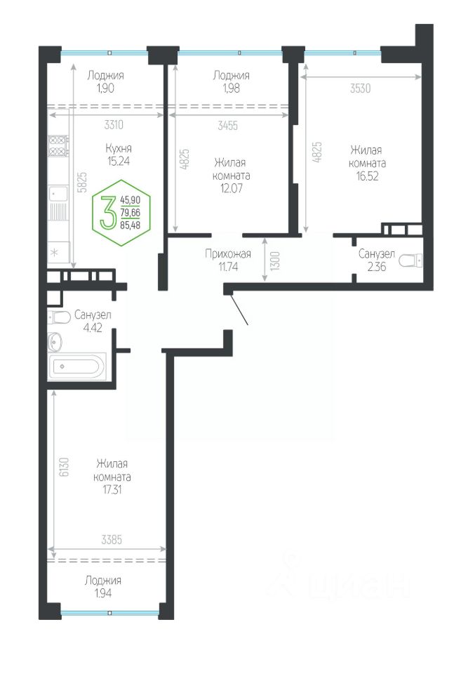 Продаётся 3-комнатная квартира в сданном доме (Дом 132/1 Корпус 5), срок сдачи: IV-кв. 2023, общей площадью 85.48 кв.м., на 7 этаже. Новый жилой комплекс ''Гарантия на Обрывной'' от застройщика ''Гарантия'' расположен по адресу город Краснодар, Обрывная улица.