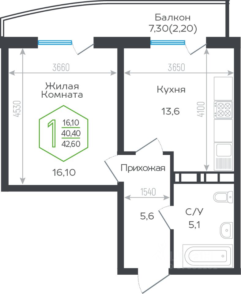 Продаётся 1-комнатная квартира в сданном доме (Обрывная 22/1), срок сдачи: II-кв. 2024, общей площадью 42.6 кв.м., на 2 этаже. Новый жилой комплекс ''Гарантия на Обрывной'' от застройщика ''Гарантия'' расположен по адресу город Краснодар, Обрывная улица.