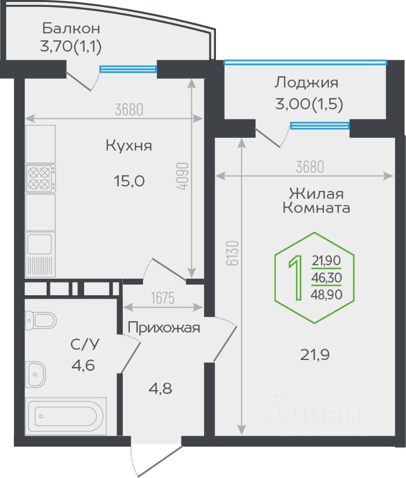 Продаётся 1-комнатная квартира в сданном доме (Обрывная 22/1), срок сдачи: II-кв. 2024, общей площадью 47.7 кв.м., на 15 этаже. Новый жилой комплекс ''Гарантия на Обрывной'' от застройщика ''Гарантия'' расположен по адресу город Краснодар, Обрывная улица.